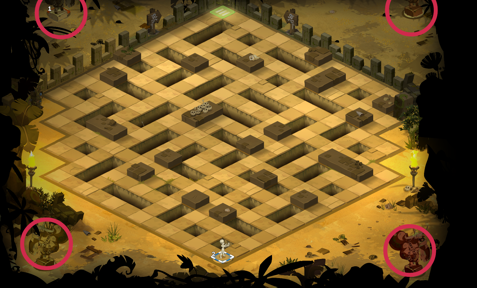 ¿Por qué es esto importante? ¡Porque el Minogolem secular intentará bloquearte el camino para que no llegues a la otra punta del mapa! Siempre hará lo mismo: 1) intercambiarse de sitio con otro minogolem, y 2) invocar un bloque de piedra en el lado opuesto.