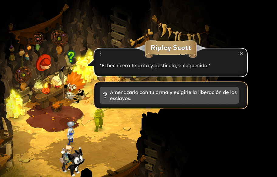 Te pedirá ver a 3 esclavos, pero antes, intenta tener todo lo que te pido en la parte de necesidades de la misión.