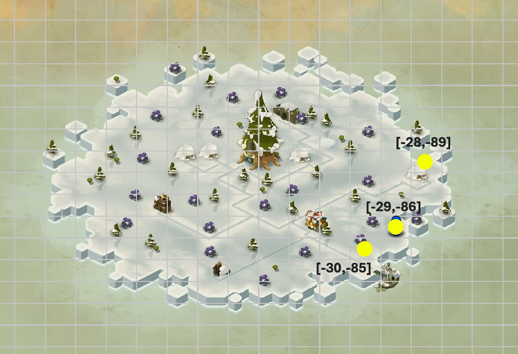 3. Por último, otra vez a Duendúbrico, pero puede encontrarse en estos 3 mapas: [-28,-89, [-29,-86] o [-30,-85]. En amarillo en la imagen.