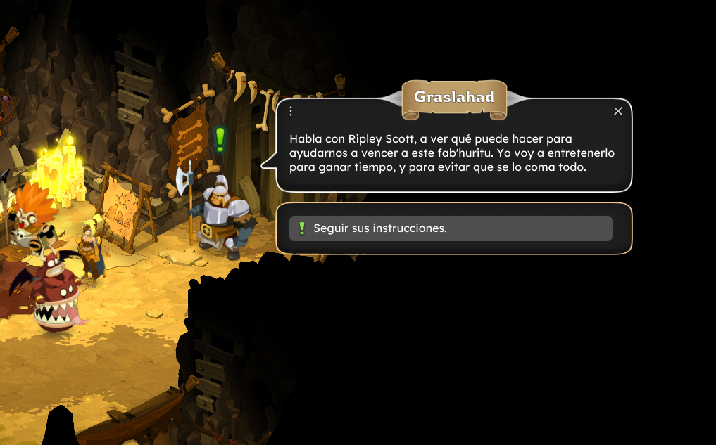 Dirígete ahora a la gruta del ritual y habla con Ripley Scott. A continuación habla con Graslahad para actualizar la misión.