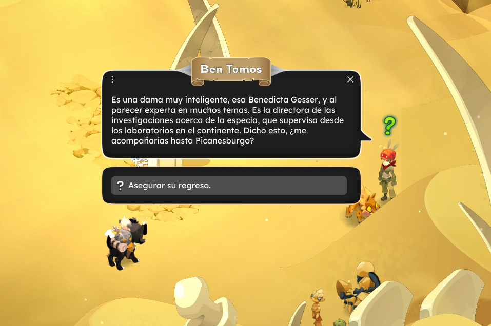 Dirígete a la taberna del Picahari [15,-57]. Entra y sube las escaleras para poder hablar con Idarfen Madjika. Cuando termines de hablar, vas a desbloquear las misiones Rodadora por mascota y Las extrañezas del faro oeste.